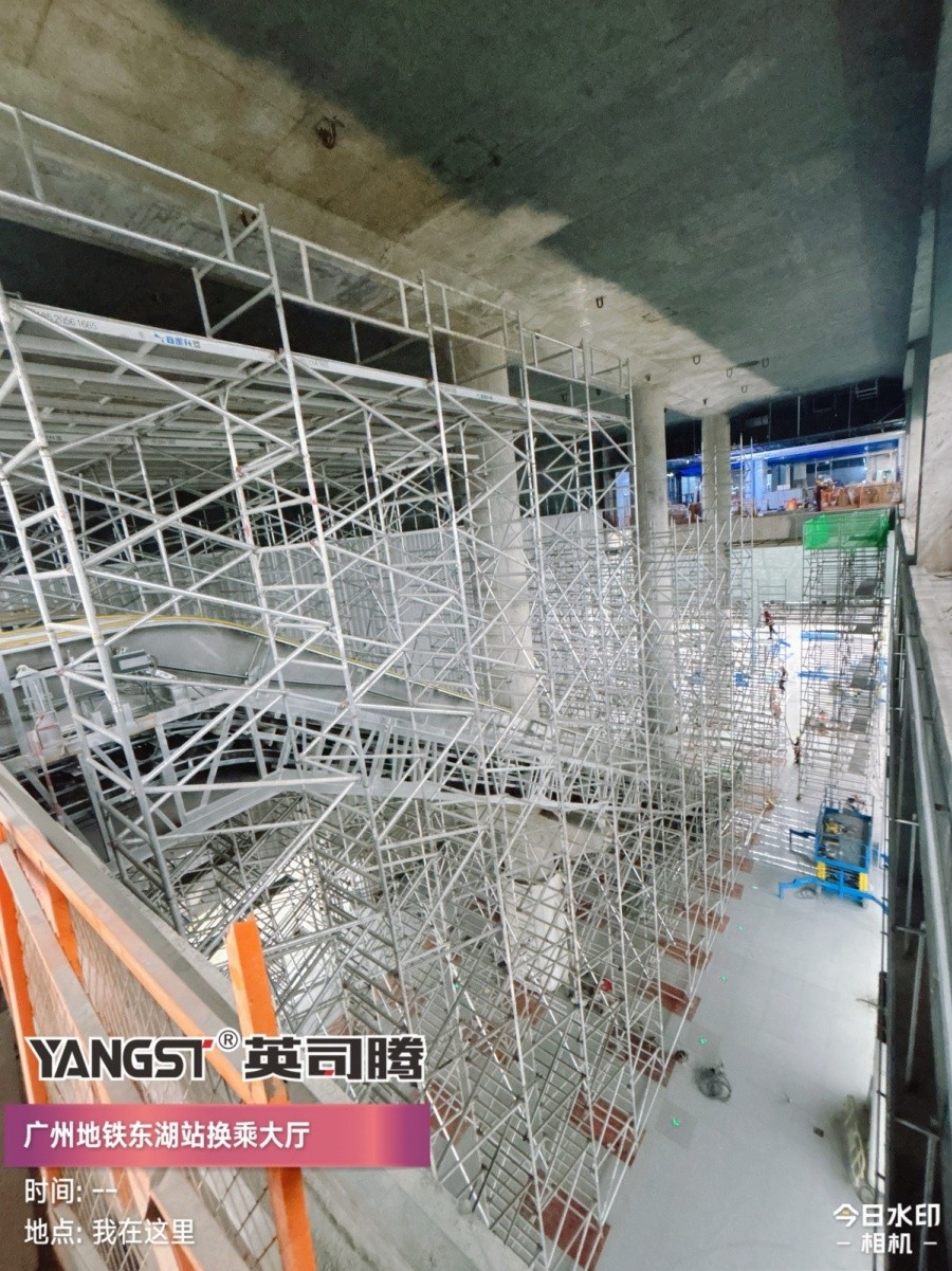 在广州地铁东湖站的改造现场,一座20米高的“钢铁森林”在45天内拔地而起,灯光璀璨的穹顶与流线型墙面完美融合,日均5万客流穿梭其中却未受丝毫影响——这场看似不可能的施工奇迹背后,是**英司腾铝合金脚手架系统**以创新科技与极致效率书写的行业标杆。